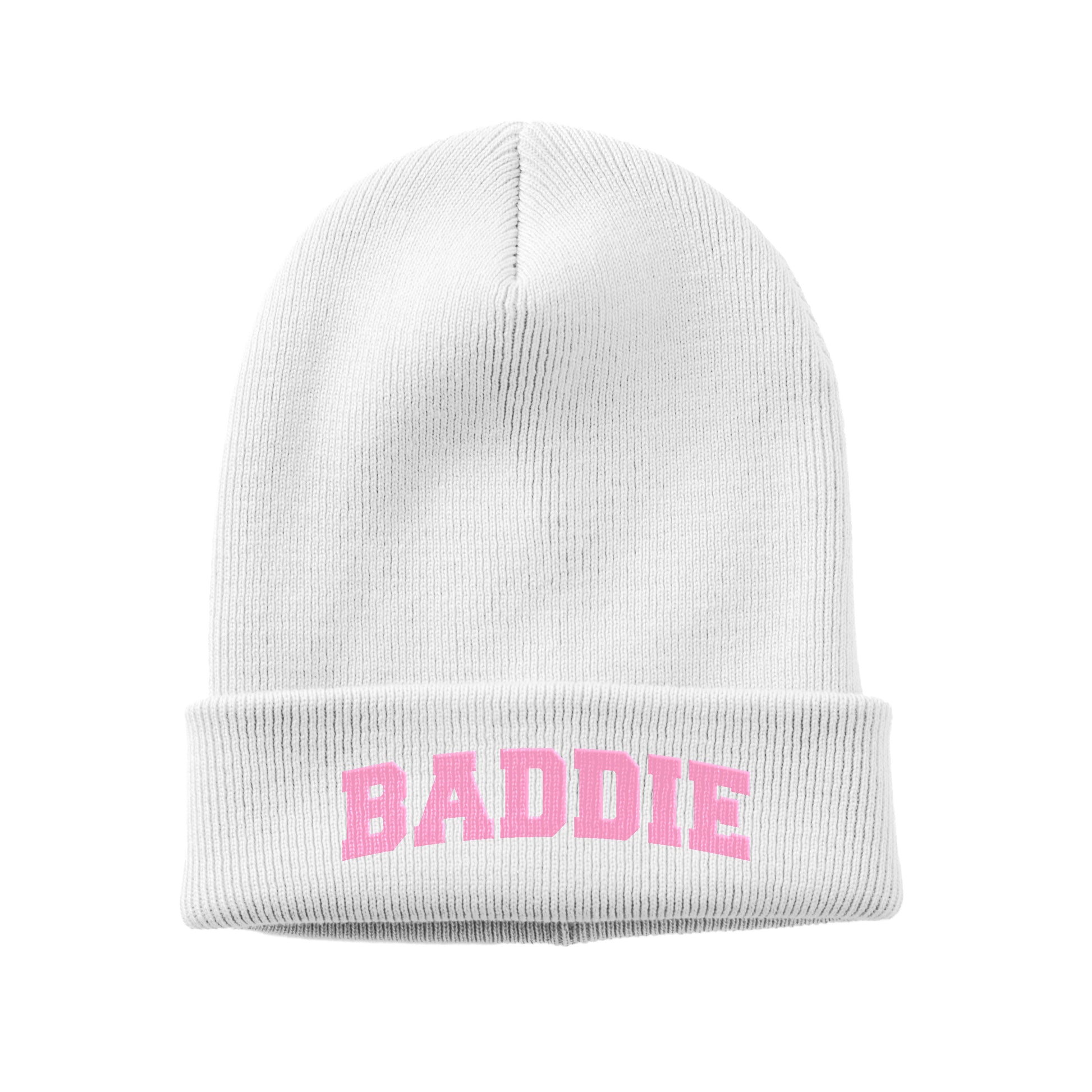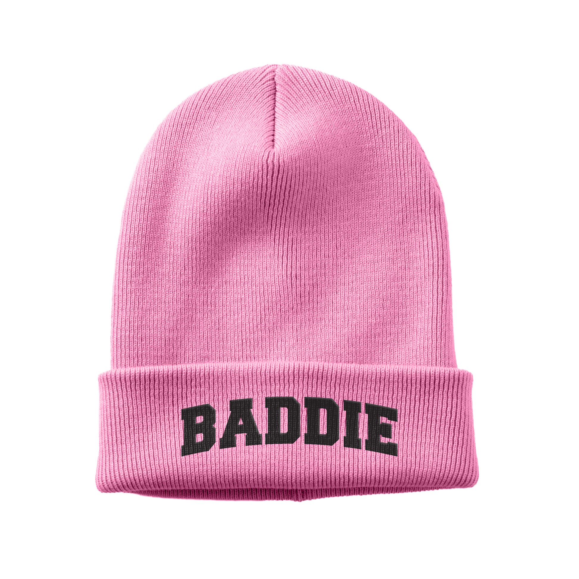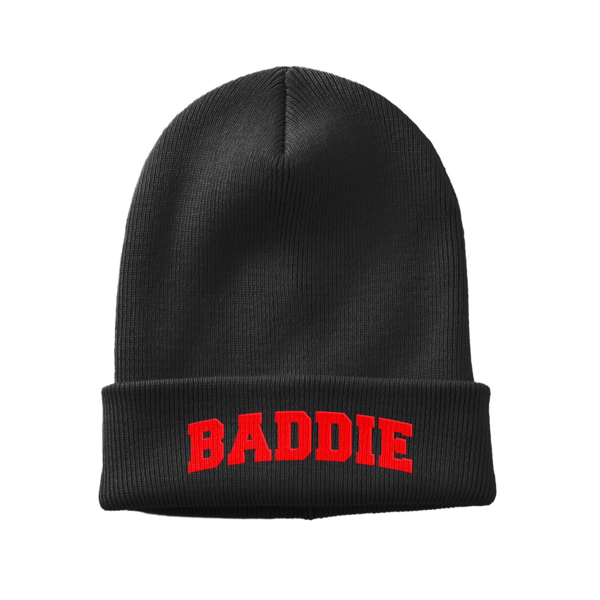 BADDIE design on beanies cuff, embroidered for maximum durability.