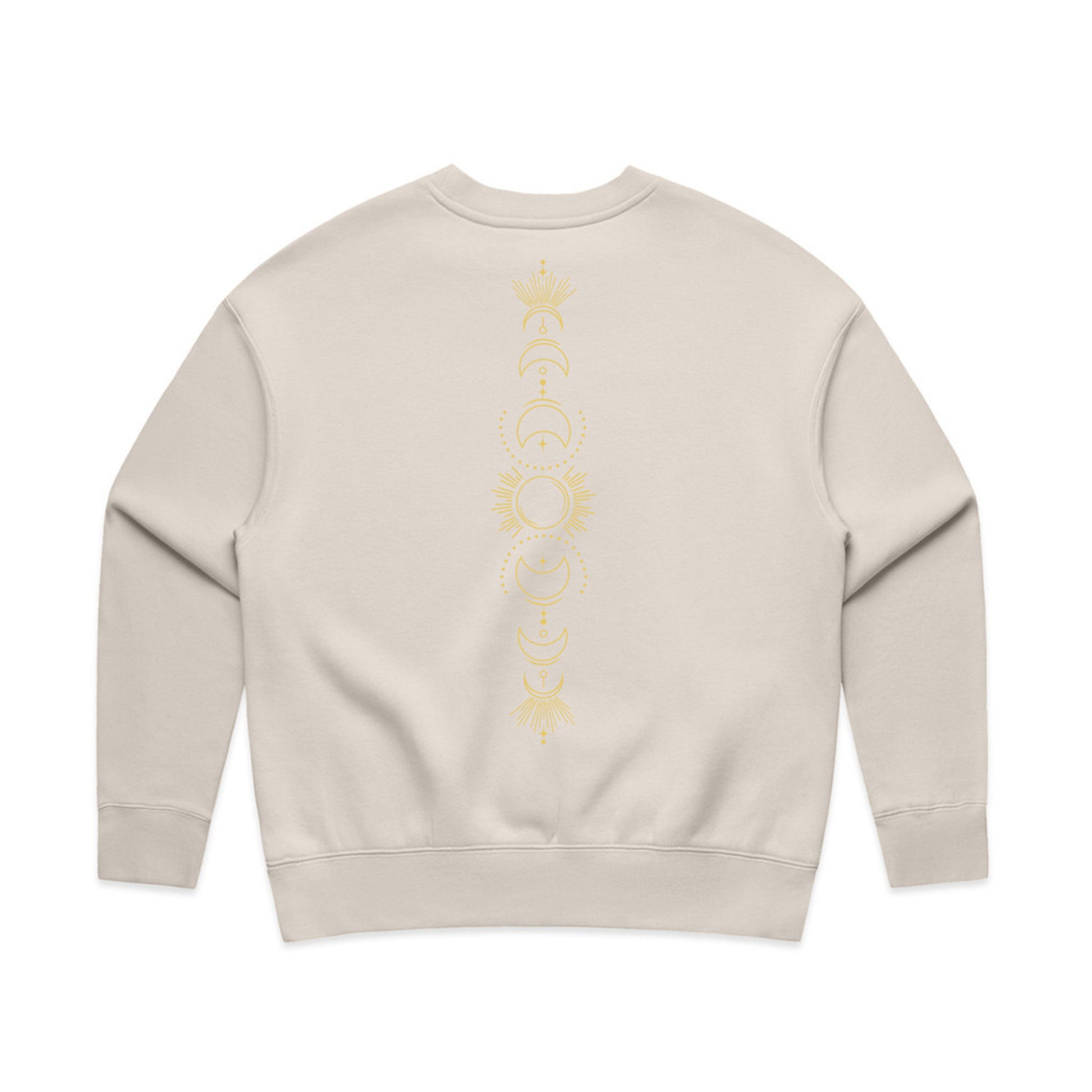 Featuring a striking vertical design of the moon's phases printed along the spine of the sweats, with our signature Luna Ray logo on the chest. blends celestial elegance with everyday comfort.
